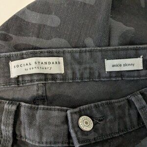SOCIAL STANDARD BY SANCTUARY Ankle Skinny Black/Gray Camo Jeans; Size 10