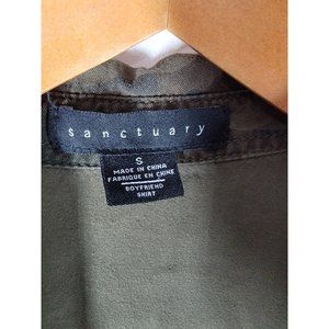 SOCIAL STANDARD BY SANCTUARY Tencel Boyfriend Shirt Green Camo. Size Small.