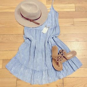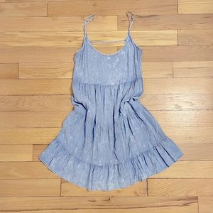 Soft chambray relaxed fit dress. Open back with Adjustable spaghetti straps.