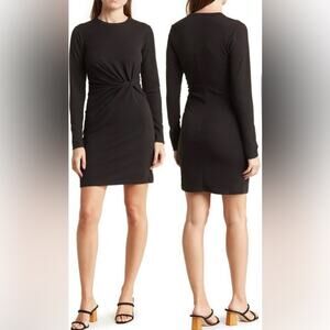 SOCIALITE Nadine Mini Dress in Black Size Small. Twisted left side. Slip-on styling.