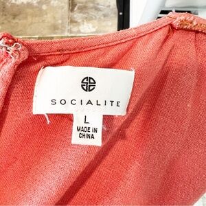 SOCIALITE ORANGE LINEN SHORT SLEEVE TIE FRONT DRESS WOMENS SZ LARGE