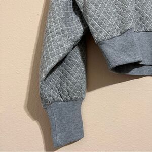 Soft ribbing trims this cropped mock-neck pullover styled with cozy diamond-shaped quilting.