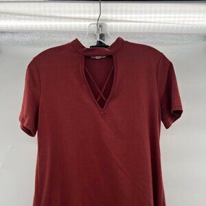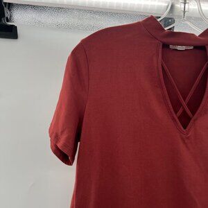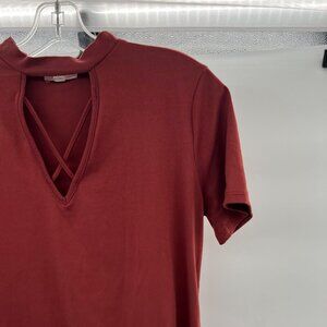 SOCIALITE Women's Short Sleeve Choker Neck Top Cinnamon Size XS