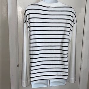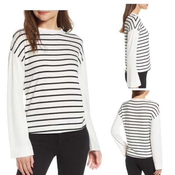 Classic stripes pattern the body of this supersoft tee cut with slouched long sleeves.