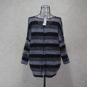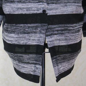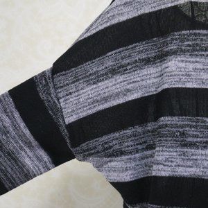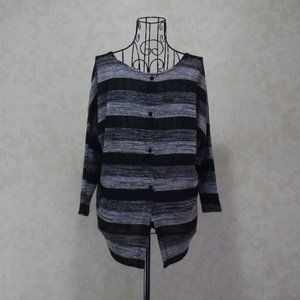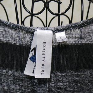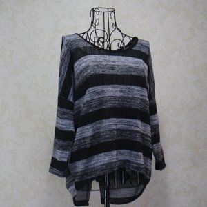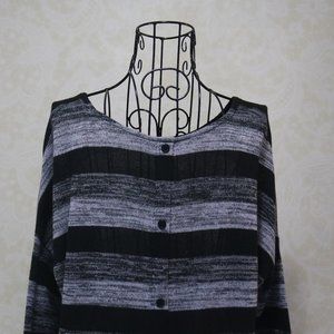 SOCIETY GIRL Black Grey Gray Stripes Button Accent Back 3/4 Sleeves Sweater Top