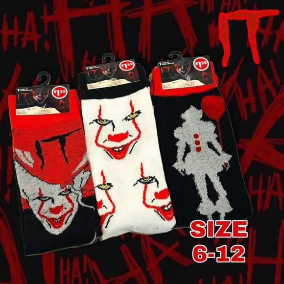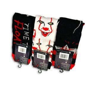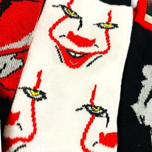 Stephen Kings IT Pennywise Crew Socks. 3 Pairs. Size 6-12 Unisex. NEW! NWT!