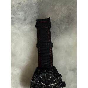 • Strap: Black fabric/NATO with leather backing & red stitching