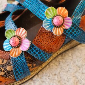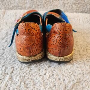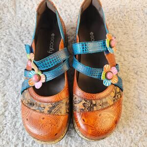 SOCOFY Women's Boho Leather Floral Slip On Mary Jane Shoes EU 38 7.5 Art To Wear