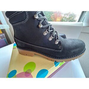 SODA Black Lace Up Nicki Lug Hiker Boots Womens Sz 8.5, Motorcycle, Gum Soles.
