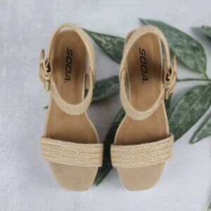 SODA NEW WOT Ankle Strap Open Toe Wedge espadrile Sandals in natural 725