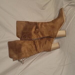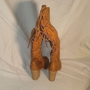 SODA Women's Bohemian Chic Faux Suede Lace Up Boots Sz 10 3" heel Fall NEW