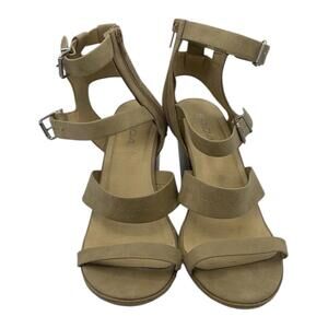 SODA Y2K Womens Block Heels Strappy Sandals Buckles SIZE 8.5 Beige