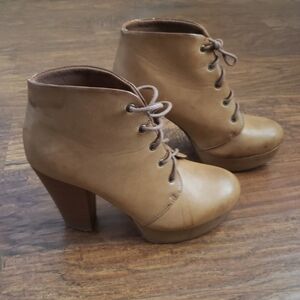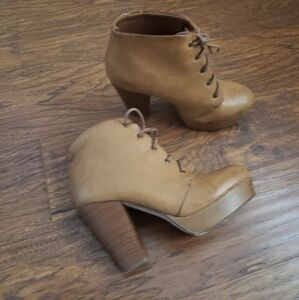SODA sz 7.5 Trendy cute lace up platform stack block heel platform 1" heel 4".