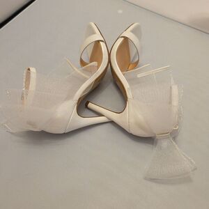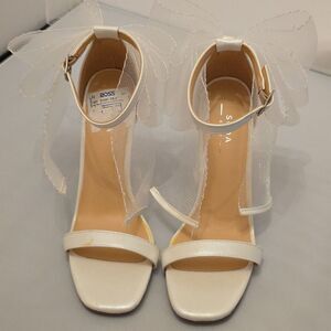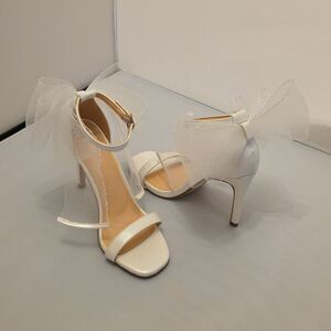 SODA ELEGANT STILETTO STRAPPY HEEL with BOW SANDAL SIZE 6 COLOR WHITE Step out in style with these elegant white stiletto heels. Featuring a chic bow detail, these shoes are perfect for any special occasion. Elevate your look with sophistication and grace.all man-made materials lining man-made material back bownot heel height measurements approximately 4"inched THIS ITEMS IS BRAND NEW WITH TAG NO BOX CHECK THE PICTURES