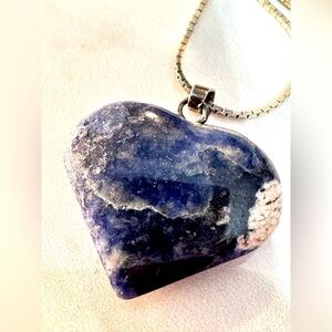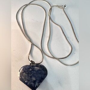 GEMSTONE HEART PENDANT NECKLACE BLUE SODALITE 23’ BOX CHAIN EUC 0684 R