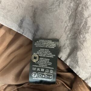 This stunning midi skirt features a side slit design, crafted from ethereal grey organza. English seams on the exterior add structure to the transparent fabric, while a detachable lining, fastened with delicate mother-of-pearl buttons, softens the look. The contrasting brown colored lining can be worn independently, enhancing its versatility.