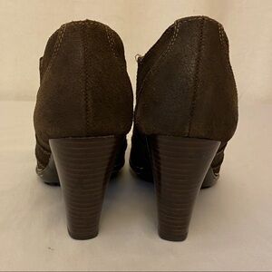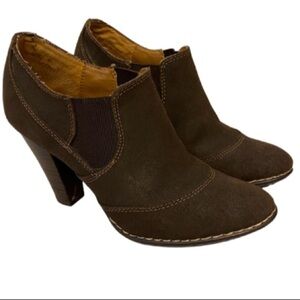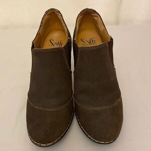 SOFFT Preowned Ankle Booties Leather Size 6.5 Brown Heels. These beautiful heel booties have contrasting stitching and lots of class! Very lightly worn. The main signs of wear are on the backs of the heels. The tops are suede leather in a pretty espresso color. SO 218