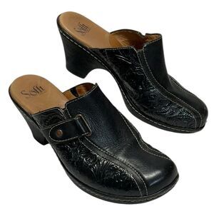 SOFFT Black Leather Boho Comfort Clogs