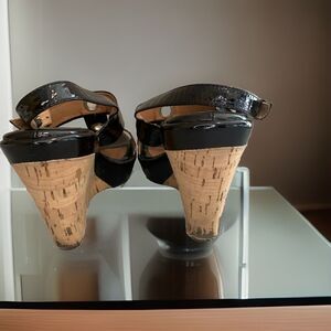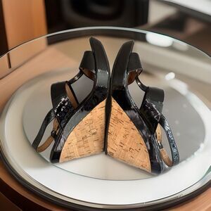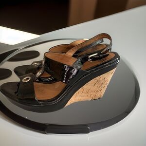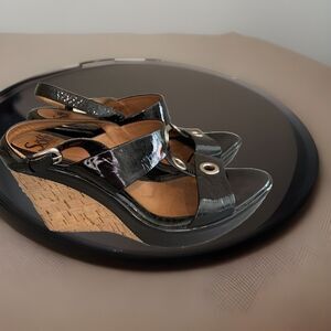 SOFFT Black Womens Size 8.5M Open Toe Sandals Wedge Heels