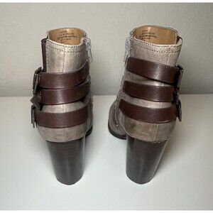 SOFFT Gray Brown Straps Chunky Block Heel Leather Ankle Booties Women's 8.5