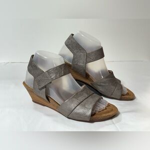 Chic and comfortable Verina pewter wedge sandals from Sofft, size 7, features an ankle strap with Velcro closure.