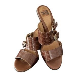 SOFFT Sandals Zane Brown Leather Faux Croc Print Heels Double Adj Straps 8M