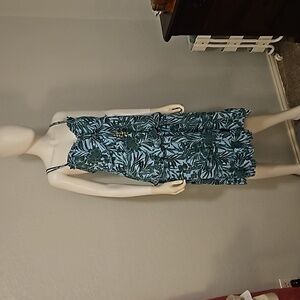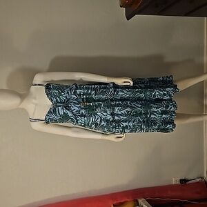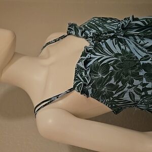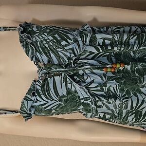 SOFIA 1990s Tropical Palm Leaf Ruffle Spaghetti Strap High Waist Slip Dress