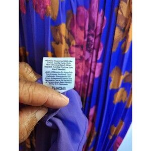 The Sofia Vergara Sleeveless Pleated Dark Floral Midi Dress in size 12/14 is a stylish and versatile option for a variety of occasions. Made of chiffon fabric with a lightweight and airy feel, this dress features a flattering V-neckline, pleated accents, and a midi length perfect for summer, fall, or spring events. The dark floral pattern adds a touch of bohemian fairy core charm, while the empire waist and strappy sleeves add a touch of elegance. Whether for a party, wedding, or casual outing, this dress is sure to make a statement with its colorful and whimsical design. PTP 19 in. Length 49 in.
