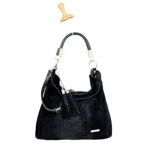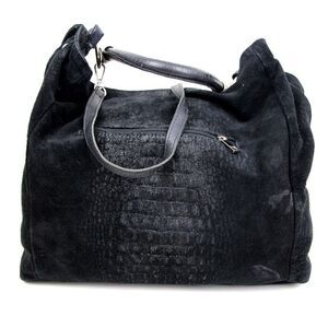 SOFIA CARDONI MADE IN ITALY BLACK SUEDE CROCO PRINT SHOULDER BAG HANDBAG HOBO