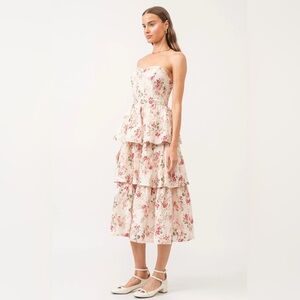 SOFIE THE LABEL FLORAL CORSET TIERED MIDI DRESS Size S