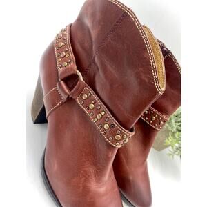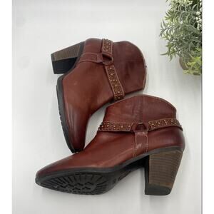 SOFT Boots Brown Red Leather Ankle Bootie Side Zip Western Harness Style 8.5W