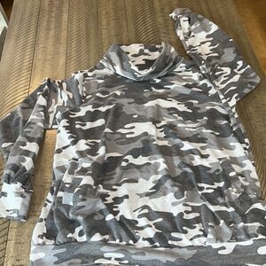 SOFT Cowl Neck Lounge sweatshirt with kangaroo 🦘 pockets.🏕️ Camo Gray Black.