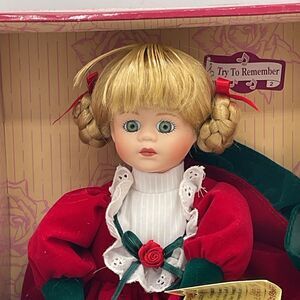 This vintage-inspired Soft Expressions animated wind-up musical porcelain doll plays feelings through fine bisque porcelain and hand-painted details. With a blonde hair, green eyes, and light complexion, this medium-sized girl doll exudes a nostalgic charm perfect for collectors or children who enjoy music-themed playsets. Handcrafted in China, this one-piece doll is a unique addition to any doll collection, embodying the brand's reputation for quality and attention to detail.