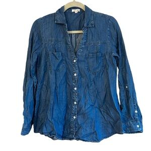 Pre owned excellent condition. Worn once or twice. Really pretty deeper denim button down top. WOMENS size small.