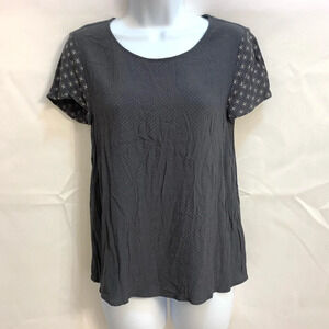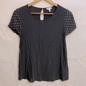 SOFT JOIE Grey Polka Dot Keyhole Back Short Sleeve Blouse - size Small