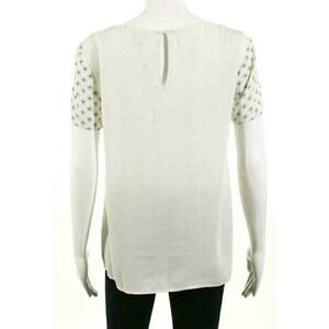 SOFT Joie polka dot cream blouse short sleeve semi sheer top shirt Size Small