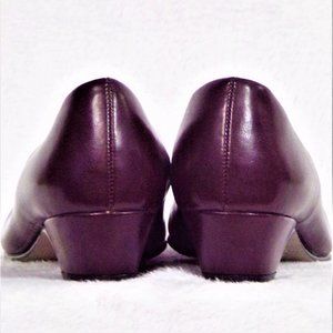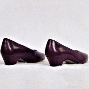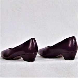 PETITE & DAINTY (SIZE 4.5M) BROWN LOW-HEEL PUMPS WITH SOFT, CUSHIONED FOOTBEDS BY SOFT STYLE, A HUSH PUPPIES COMPANY. Pre-owned, near-perfect, like-new condition, faint traces of wear on soles (picture #13), otherwise no defects or damage, little sign of wear. Look of fine-grain leather, but all synthetic. Inside measurements: length, heel to toe 8 7/8"; widest point 2.75"; narrowest point 1.75". Heel height 1.5".