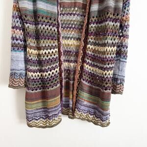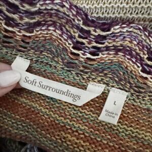 SOFT SURROUNDINGS Albi Crochet Open Knit Rainbow Cardigan Sweater Large L