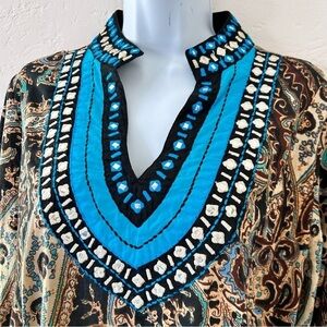 SOFT SURROUNDINGS Aubrey Embroidered Mirrored Beading Paisley Tunic Dress Top M