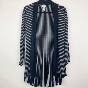 SOFT SURROUNDINGS Black Gray Striped Cashmere Blend Open Cardigan - Pet Size M
