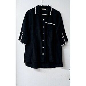 SOFT SURROUNDINGS Black White Embroidered Relaxed Button-Up Women Shirt (S)