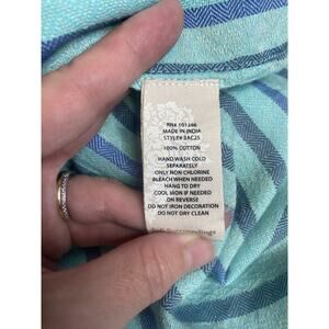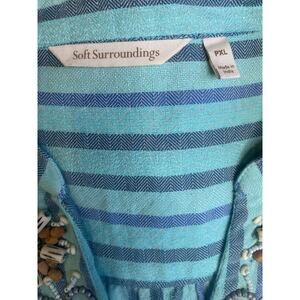 SOFT SURROUNDINGS Size PXL Aqua Stripe Beaded Tunic Top Roll Tab Sleeve Boho. Has pockets. No rips or stains. Good used condition.
