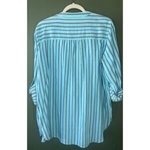 SOFT SURROUNDINGS Blouse Womens Size PXL Tunic Shirt Top Roll Tab Sleeve Coastal