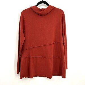 SOFT SURROUNDINGS Brick Red Cowl Neck Reverse Stitch Long Sleeve Top Size Large