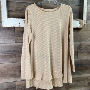 SOFT SURROUNDINGS CORA PIMA TEE Long Sleeve Layered Top Tan White Striped Sz Med