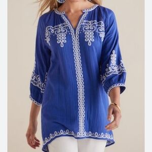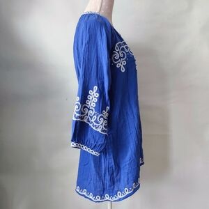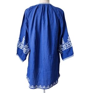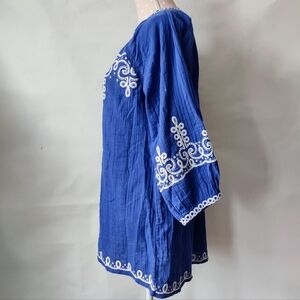 SOFT SURROUNDINGS Coruh Gauze Top Embroidered Blue Tunic Size Medium
