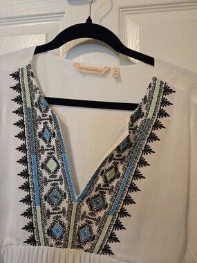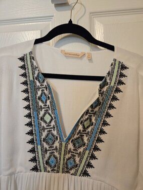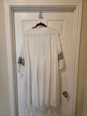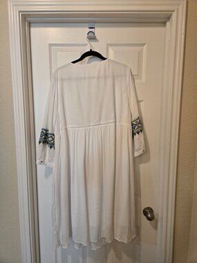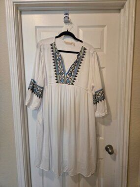 Beautiful, white soft surroundings. Dress size extra large with embroidery. Great for any occasion