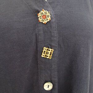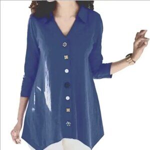 SOFT SURROUNDINGS Danielle Button ¾ Sleeve Navy Top Tunic – Med
