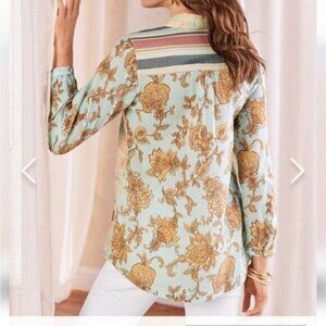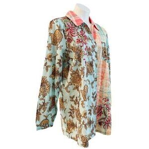 SOFT SURROUNDINGS Descansa Tunic Button Down Shirt Aquatic Multi Size L NEW