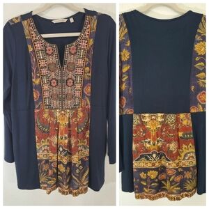 SOFT SURROUNDINGS Desert Mirage Embroidered Tunic Top Boho Textured, size Medium Petite. Gently pre-owned.